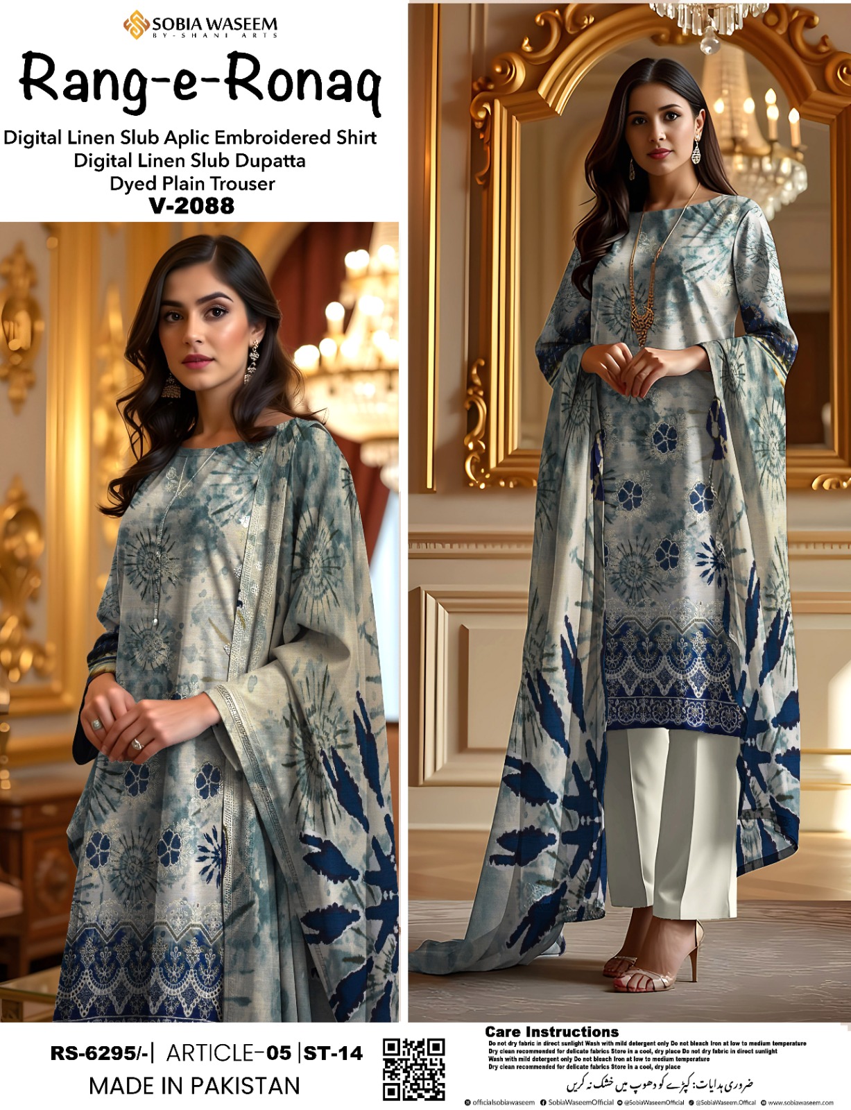 Digital Linen Slub 3-Piece Suit – Azure Mirage