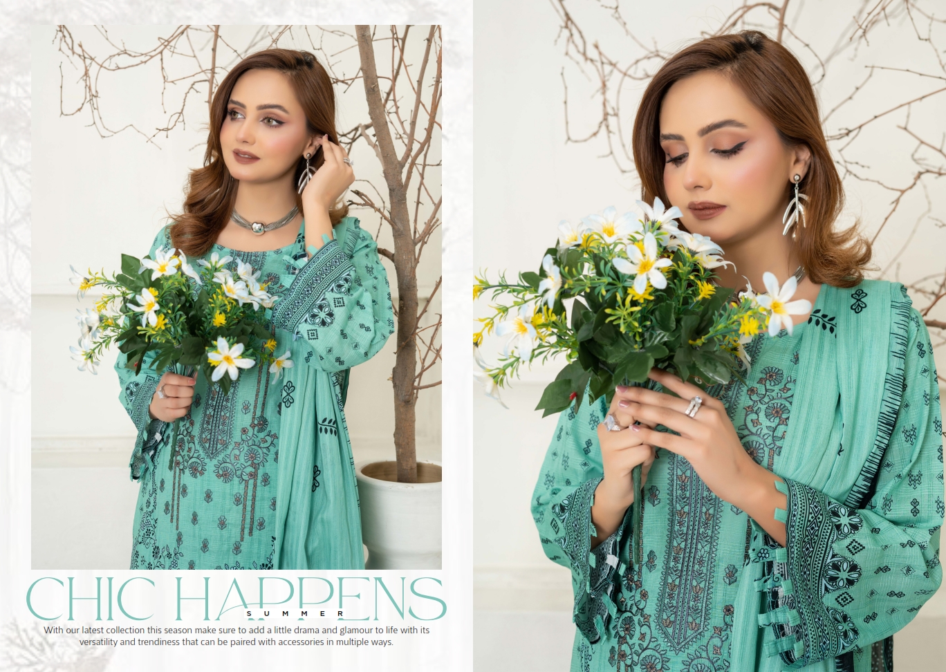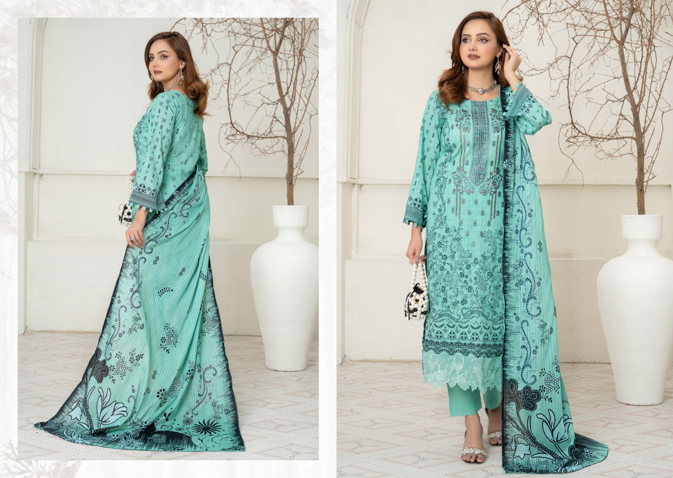 Experience timeless elegance with our premium 3-piece festive lawn suit. Designed with intricate digital prints and fine embroidery, this outfit features: