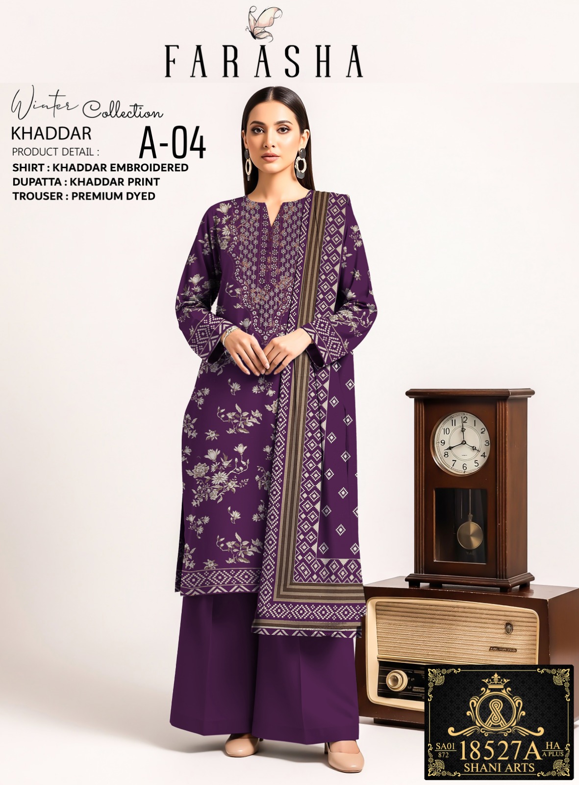 Step into timeless elegance with Orchid Bloom from Farasha by Shani Arts Winter Collection. This 3-piece Khaddar suit showcases a deep plum hue enriched with delicate floral embroidery — a perfect blend of sophistication and seasonal warmth.