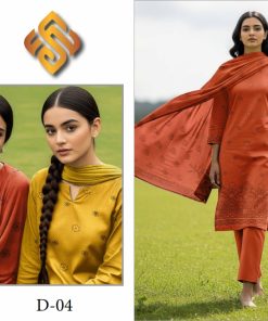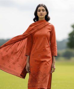 Step into effortless sophistication with this 3-piece unstitched winter suit from Sobia Waseem by Shani Arts. Crafted from fancy winter fabric, this ensemble combines timeless beauty and comfort, perfect for the cool season. The rich rust orange hue radiates warmth and elegance, making it an ideal choice for festive gatherings, winter lunches, and formal evenings.